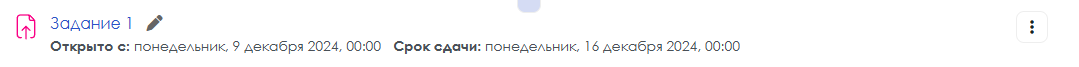 Задания могут быть различных типов: тесты, практические работы, лабораторные работы, эссе, опросы, обсуждения и др.